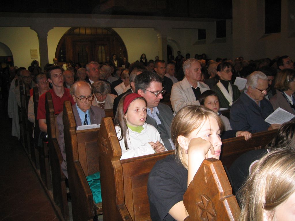 B.G.: Természetesen a 10 év alatt voltak külföldi utak, koncertek s más ünnepi alkalmak is. Ezek közül az egyik legemlékezetesebb az a Cantate vasárnapi vespera, amelyet a Budai Egyházmegye evangélikus kórusaival közösen tartottunk, s amelyen bebizonyosodott, hogy a „hagyományos amatőr kórusrepertoár” művei is beilleszthetőek a vespera liturgikus keretei közé, s ott mélyebb összefüggésrendszerbe kerülve új értelmet kapnak. A puritán istentiszteleti formákon edződött öt kórus tagsága szinte egyöntetűen megerősödött célkitűzéseiben: nem csak „általában” dolgunk „valami oda illőt” énekelni az istentiszteleteken, hanem az istentisztelet liturgiájának részévé kell tennünk tevékenységünket. De ugyanilyen szívesen emlékszem vissza olyan csendes hétköznapi alkalmakra, mint amikor például egyik altos társammal kettesben kényszerültünk végigénekelni az előírt tételeket (valami vis major a többieket elszólította), s nem vallottunk szégyent. Máskor – talán áramszünet miatt – félsötétben zajlott a szertartás, különlegesen meghitt perceket éltünk át, s a Magnificattól már szinte fejből énekelve teljesítettük a szolgálatot.