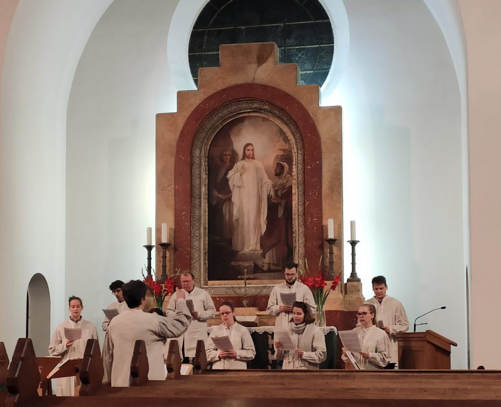 A gyülekezeti éneklésben való részvétel mellett húsvétkor Ligeti György (1923–2006): Húsvét című nőikarának egy részletével, húsvét utáni második vasárnap Szokolay Sándor (1931–2013): 23. zsoltárával (n:o 12 a Szakrális kánonok sorozatból) és a 401. ének kortárs finn feldolgozásával, húsvét utáni negyedik vasárnap J. H. Schein (1586–1630): Szolgád, az vagyok én c. művével és egy Selnecker-korálfeldolgozással, pünkösdkor Melchior Vulpius (1570–1615): Dum complerentur dies Pentecostes c. tételével szolgálhattunk.