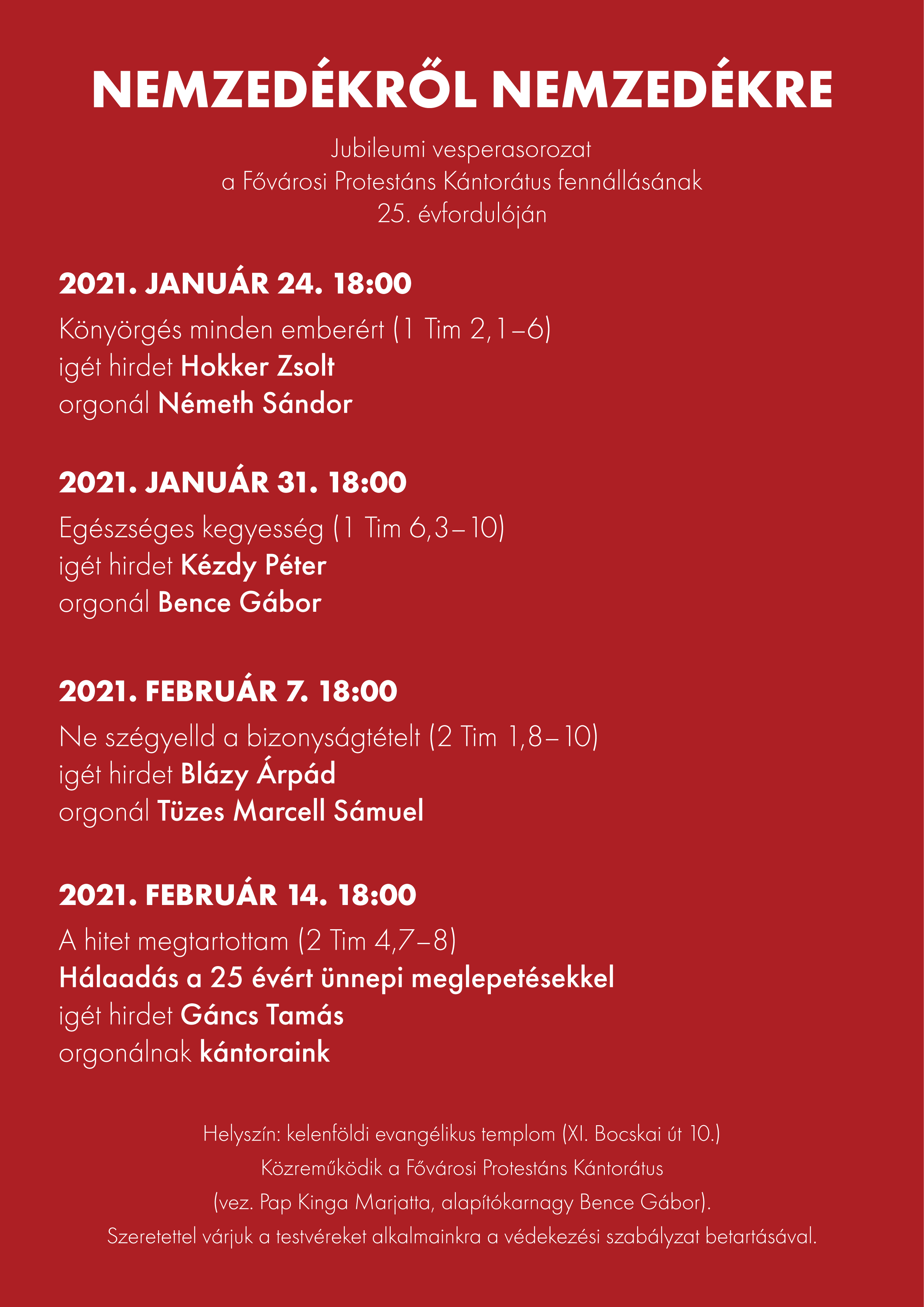Nemzedékről nemzedékre. Jubileumi vesperasorozat a Fővárosi Protestáns Kántorátus fennállásának 25. évfordulóján