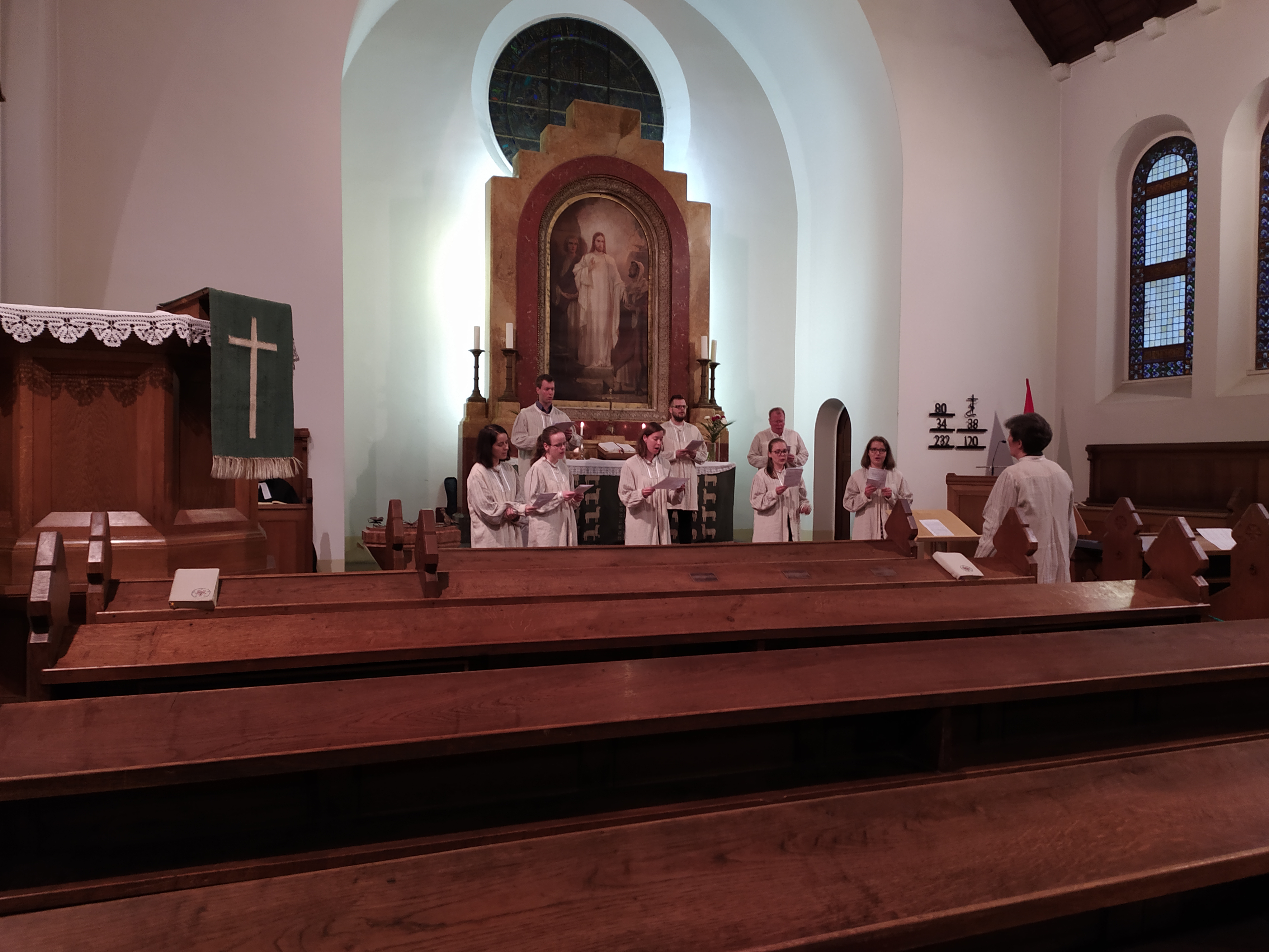 A gyülekezeti éneklésben való részvétel mellett húsvétkor Ligeti György (1923–2006): Húsvét című nőikarának egy részletével, húsvét utáni második vasárnap Szokolay Sándor (1931–2013): 23. zsoltárával (n:o 12 a Szakrális kánonok sorozatból) és a 401. ének kortárs finn feldolgozásával, húsvét utáni negyedik vasárnap J. H. Schein (1586–1630): Szolgád, az vagyok én c. művével és egy Selnecker-korálfeldolgozással, pünkösdkor Melchior Vulpius (1570–1615): Dum complerentur dies Pentecostes c. tételével szolgálhattunk.